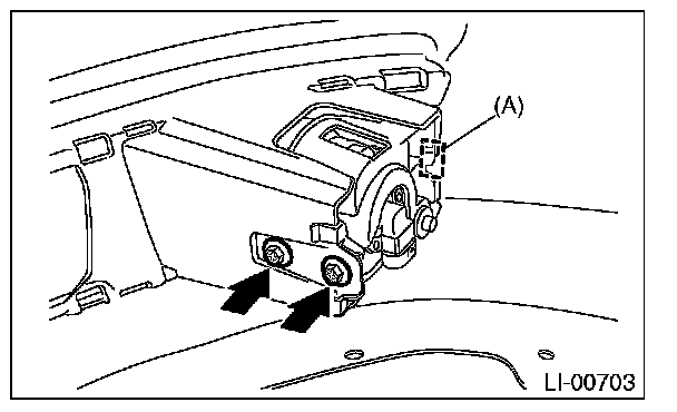 4. Remove the mounting bolts and claw (A), and detach the fog light assembly by pulling it backward.