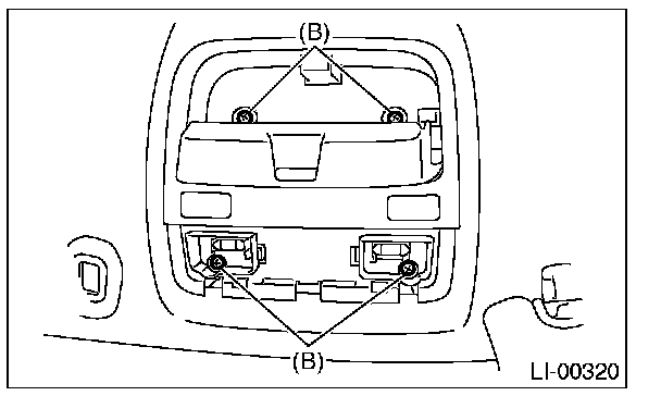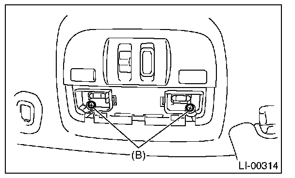 2. Remove the lens (A) and spot map light mounting screws (B).