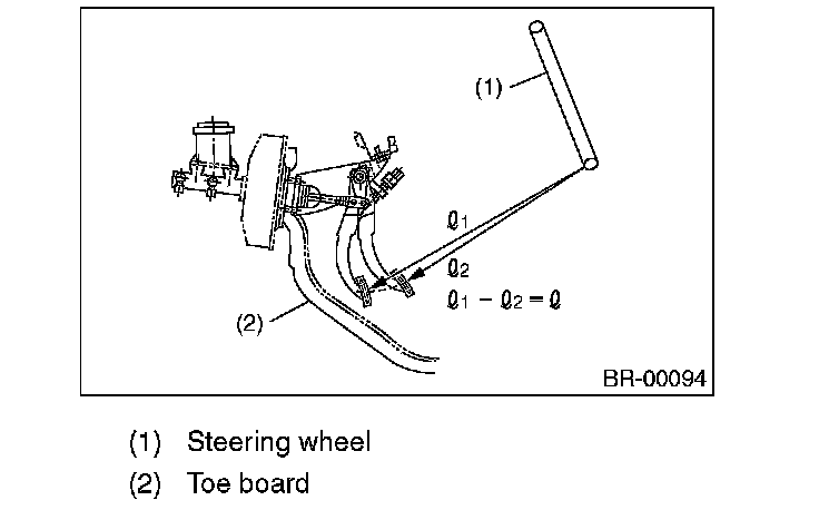 Specification of pedal stroke: When depressing the pedal with a force of 500 N (51 kgf, 112 lbf). 95 mm (3.74 in) or less