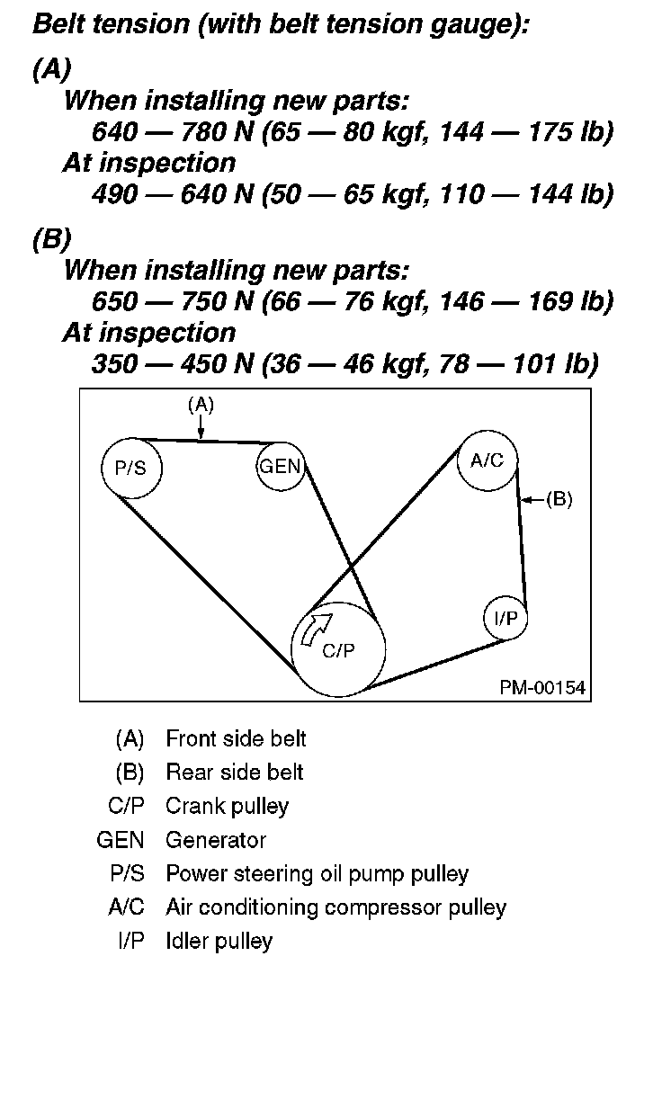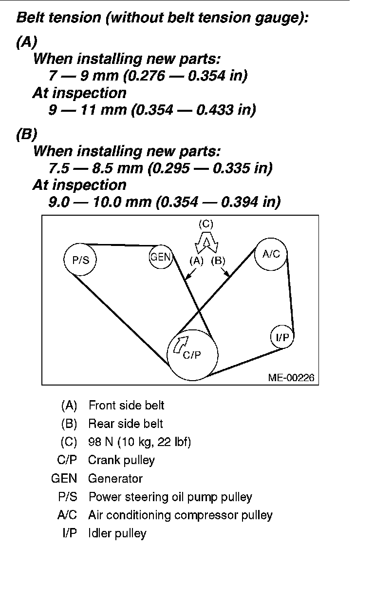 1) Install the front side belt (C), and tighten the slider bolt so as to obtain the specified belt tension.