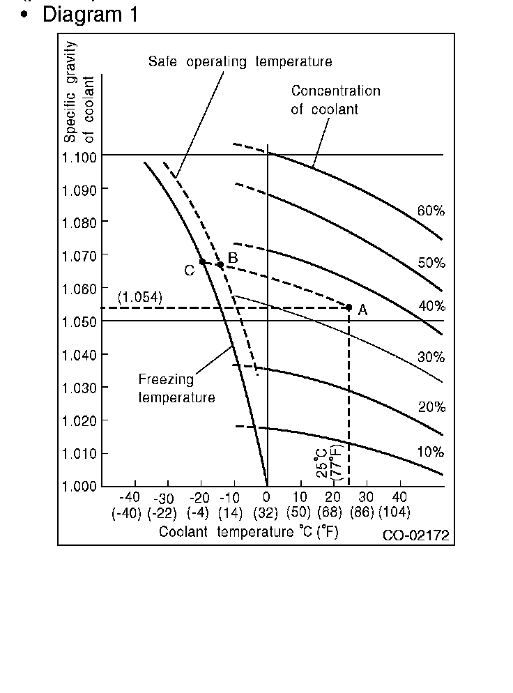 The concentration and safe operating temperature of engine coolant is shown in the diagram 1. Measuring the temperature and specific gravity of the coolant will provide this information.