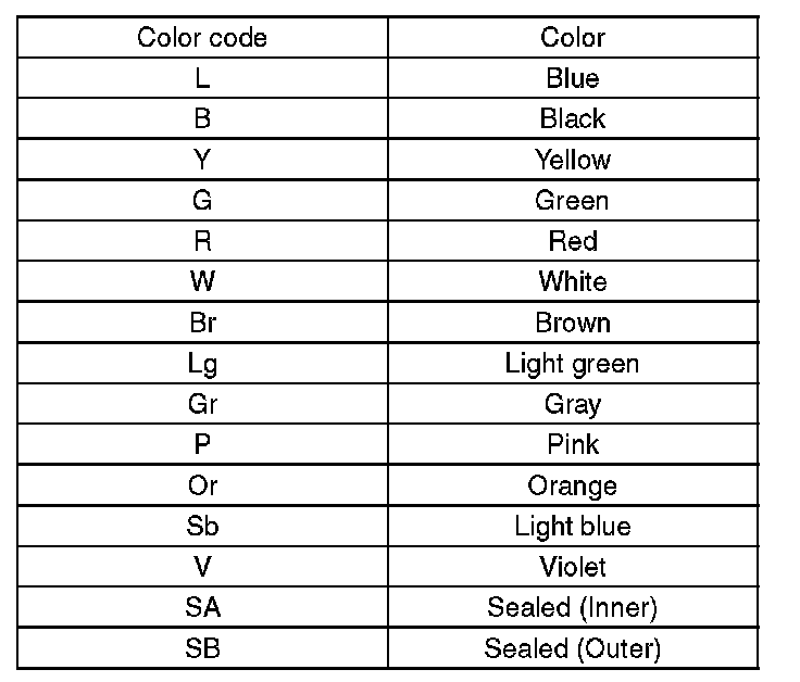 - The wire color code, which consists of two letters (or three letters including Br or Lg), indicates the standard color (base color of the wire covering) by its first letter and the stripe marking by its second letter.