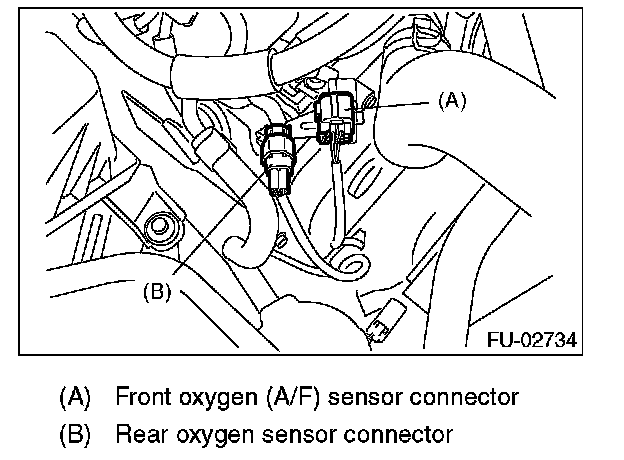 4. Remove the clip fastening the harness and disconnect the front oxygen (A/F) sensor connector.