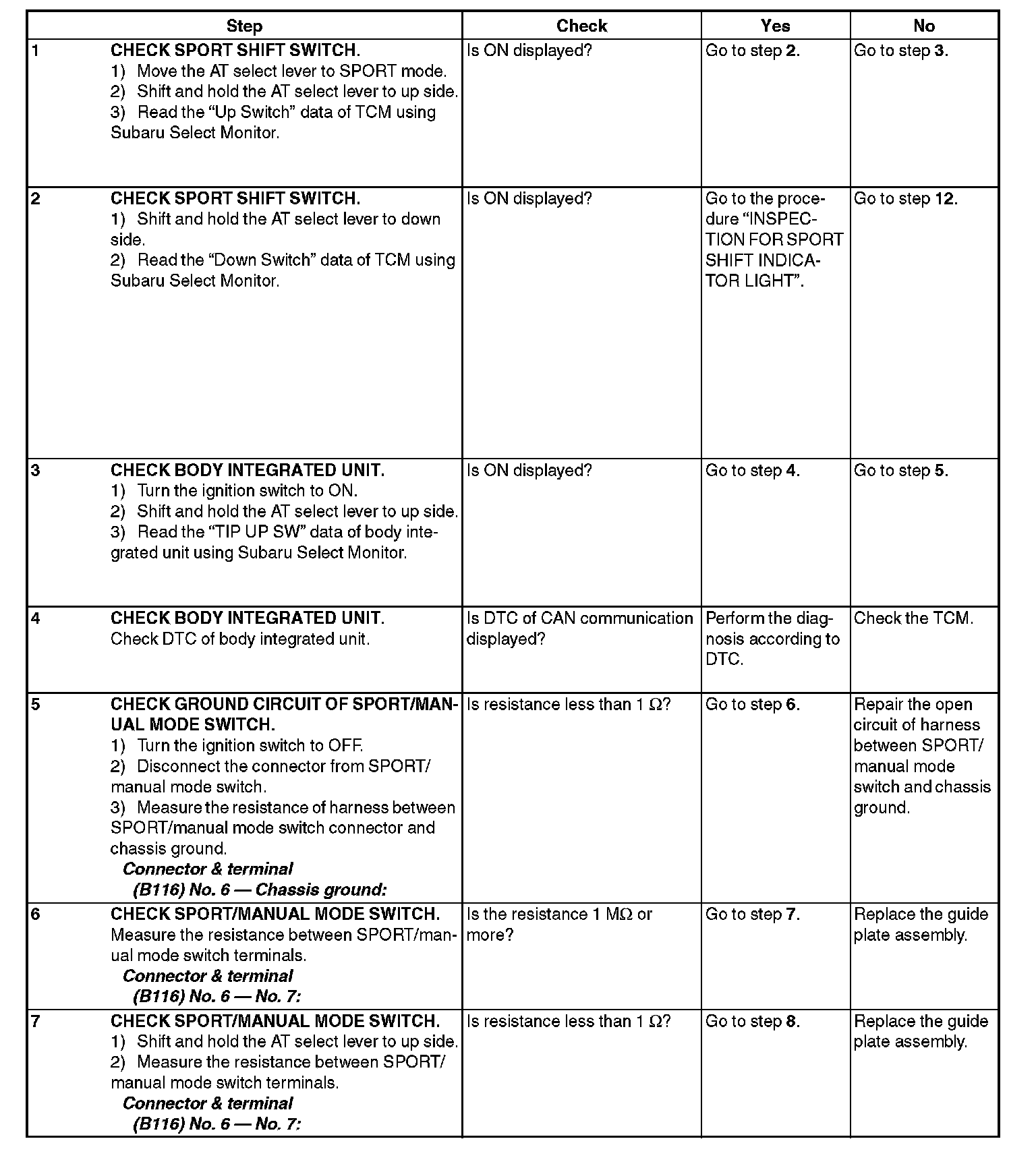 Input signal circuit of SPORT/manual mode switch is open or shorted.