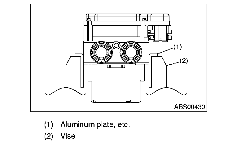 2) To prevent entry of foreign objects and brake fluid leakage, plug the oil pressure port of the ABSCM & H/U using a screw plug, etc.