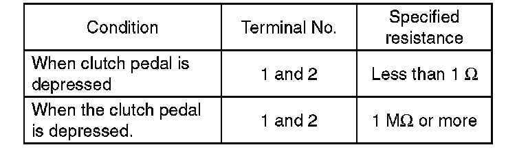 3) Check the clutch switch for continuity. If the resistance is not at the standard value, replace the switch.
