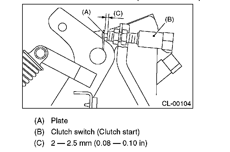 3) Adjust the gap of the clutch pedal plate and the clutch switch to be 2 - 2.5 mm (0.08 - 0.10 in).