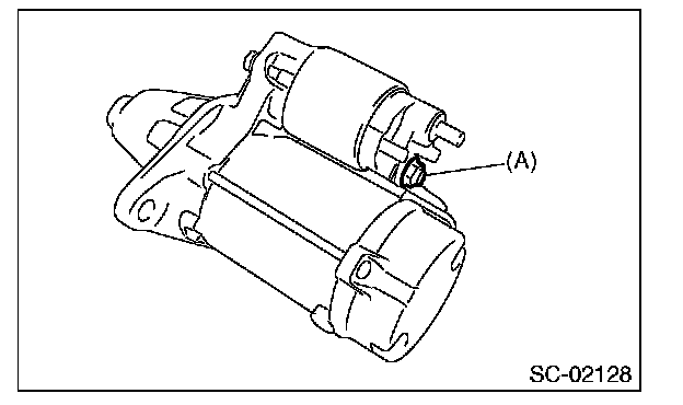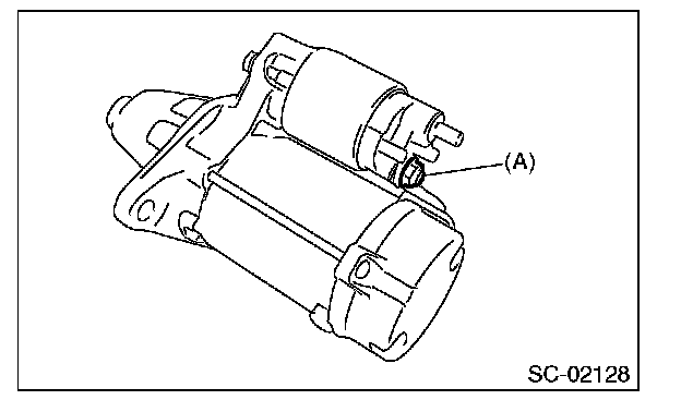 DISASSEMBLY1. Loosen the nut which holds terminal M (A) of magnet switch assembly, and then disconnect the harness from terminal.