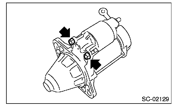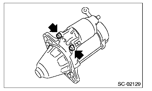 4. Remove the through bolts on both sides, and then remove the starter housing.