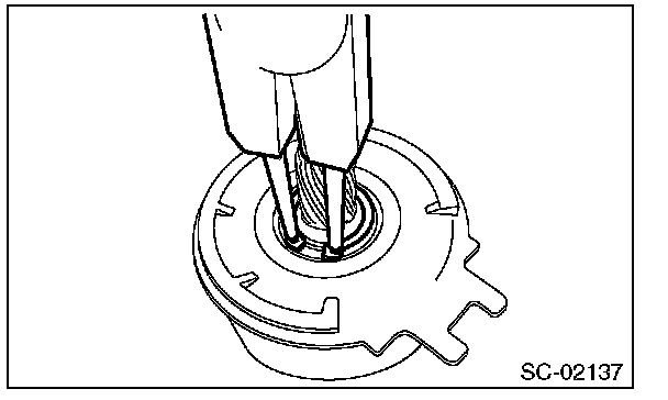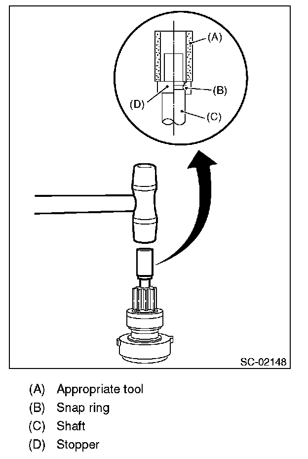 1. Using a plastic hammer, remove the stopper from snap ring by lightly tapping the stopper with an appropriate tool (such as a fit socket wrench).