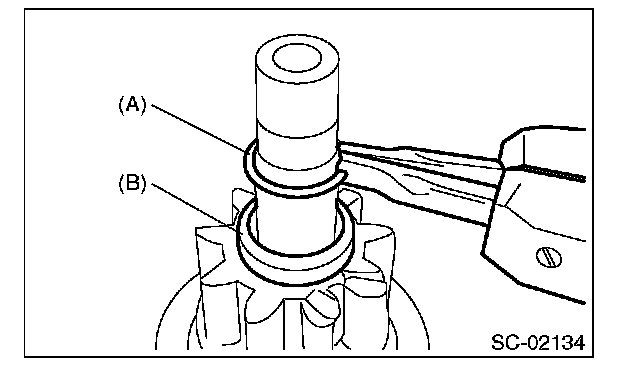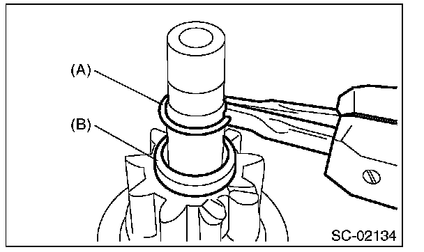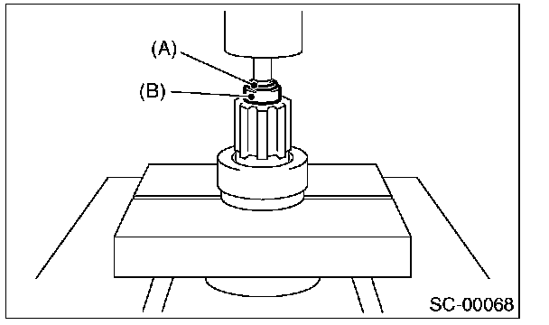4. Press-fit the stopper (B) to snap ring (A) using a press.