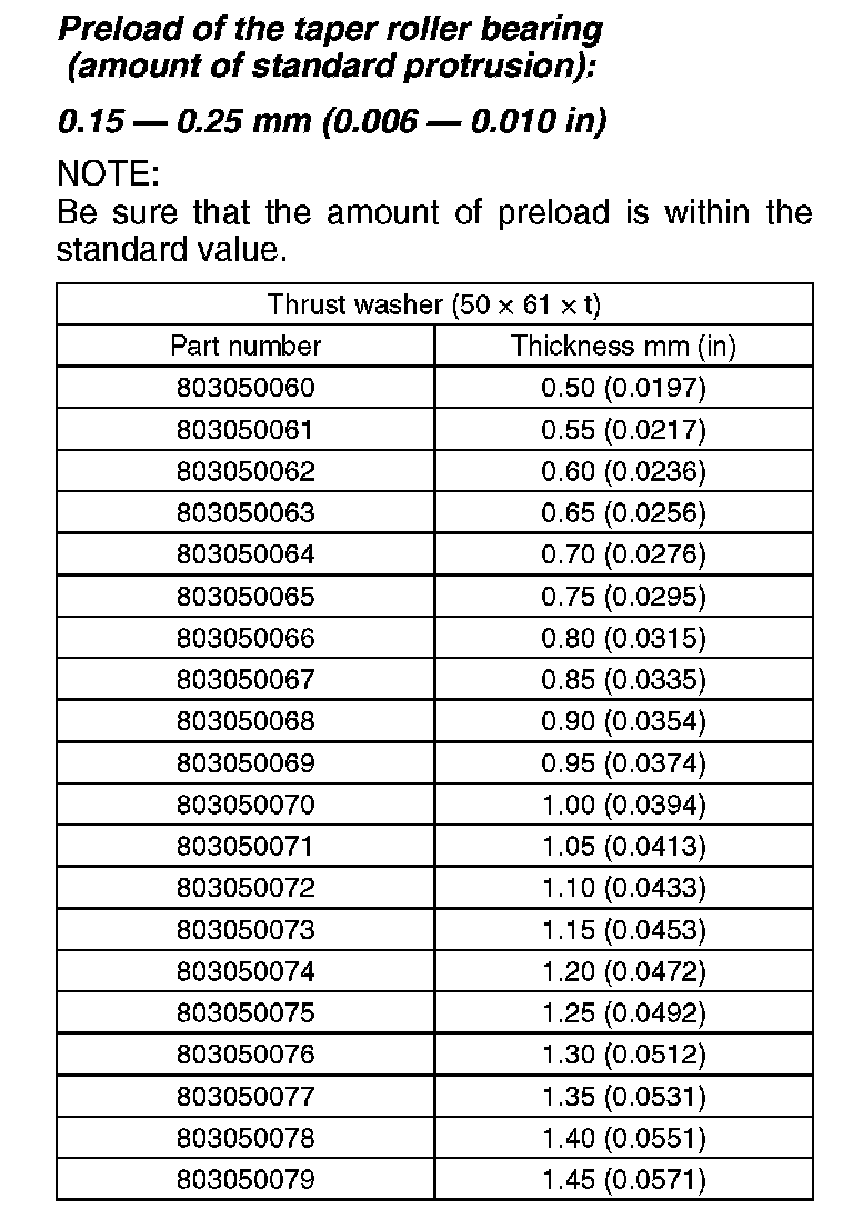 EXTENSION ASSEMBLYPreload of the taper roller bearing (amount of standard protrusion): 0.15 - 0.25 mm (0.006 - 0.010 in)