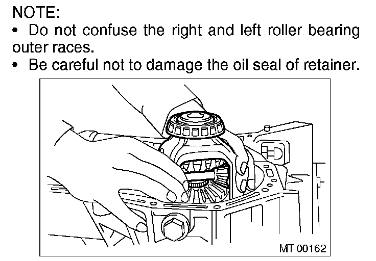 NOTE: Be careful because the roller bearing outer races are used as a set.