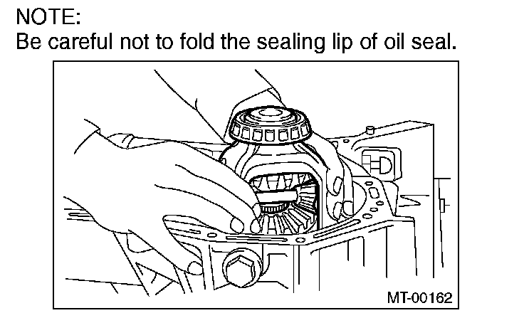 NOTE: Be careful not to fold the sealing lip of oil seal.
