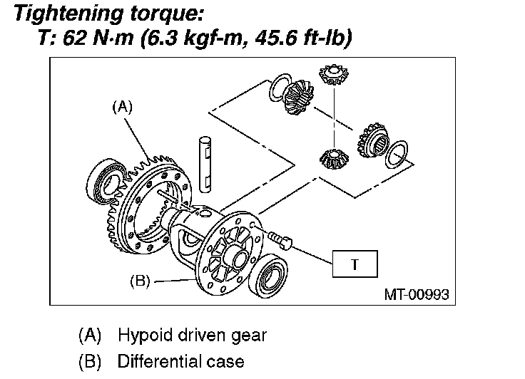 5) Install the hypoid driven gear to the differential case using twelve bolts.
