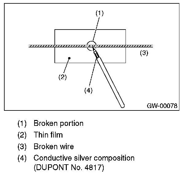 3. Apply the conductive silver composition (DUPONT No. 4817) to the broken portion.