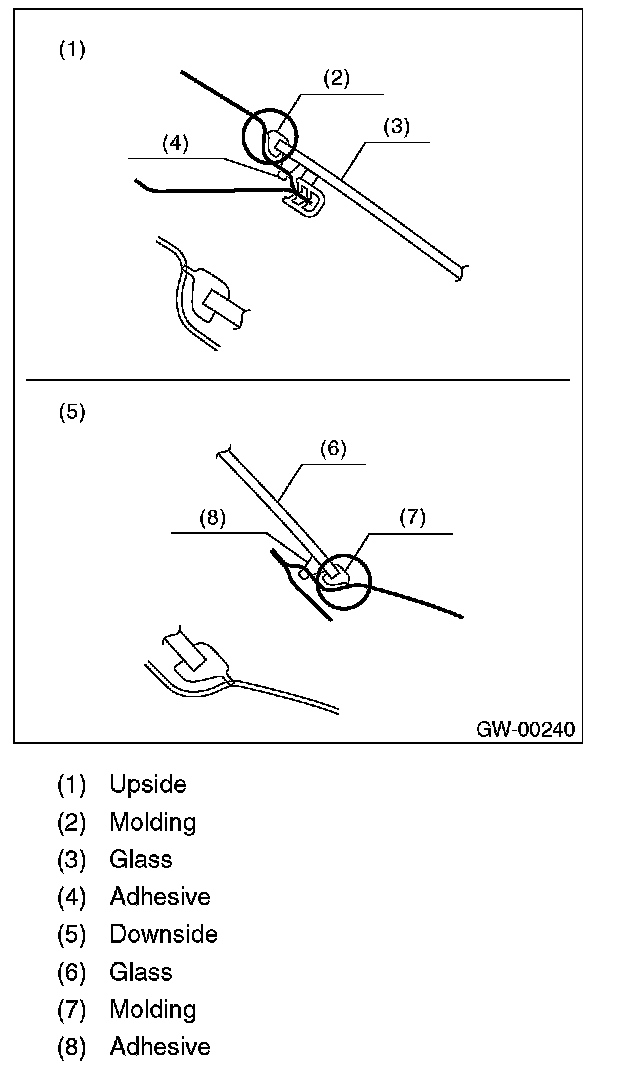 1. Apply adhesive in the same procedure as for windshield glass.