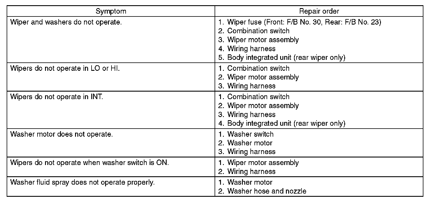 Wiper and Washer Systems: Testing and Inspection