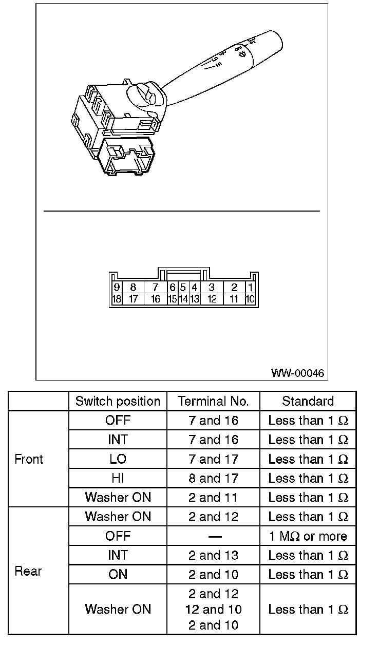 Wiper Switch: Testing and Inspection