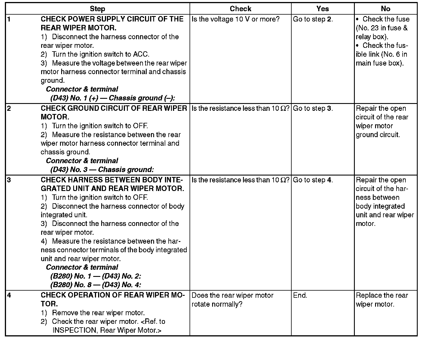 2. Check rear wiper motor circuit