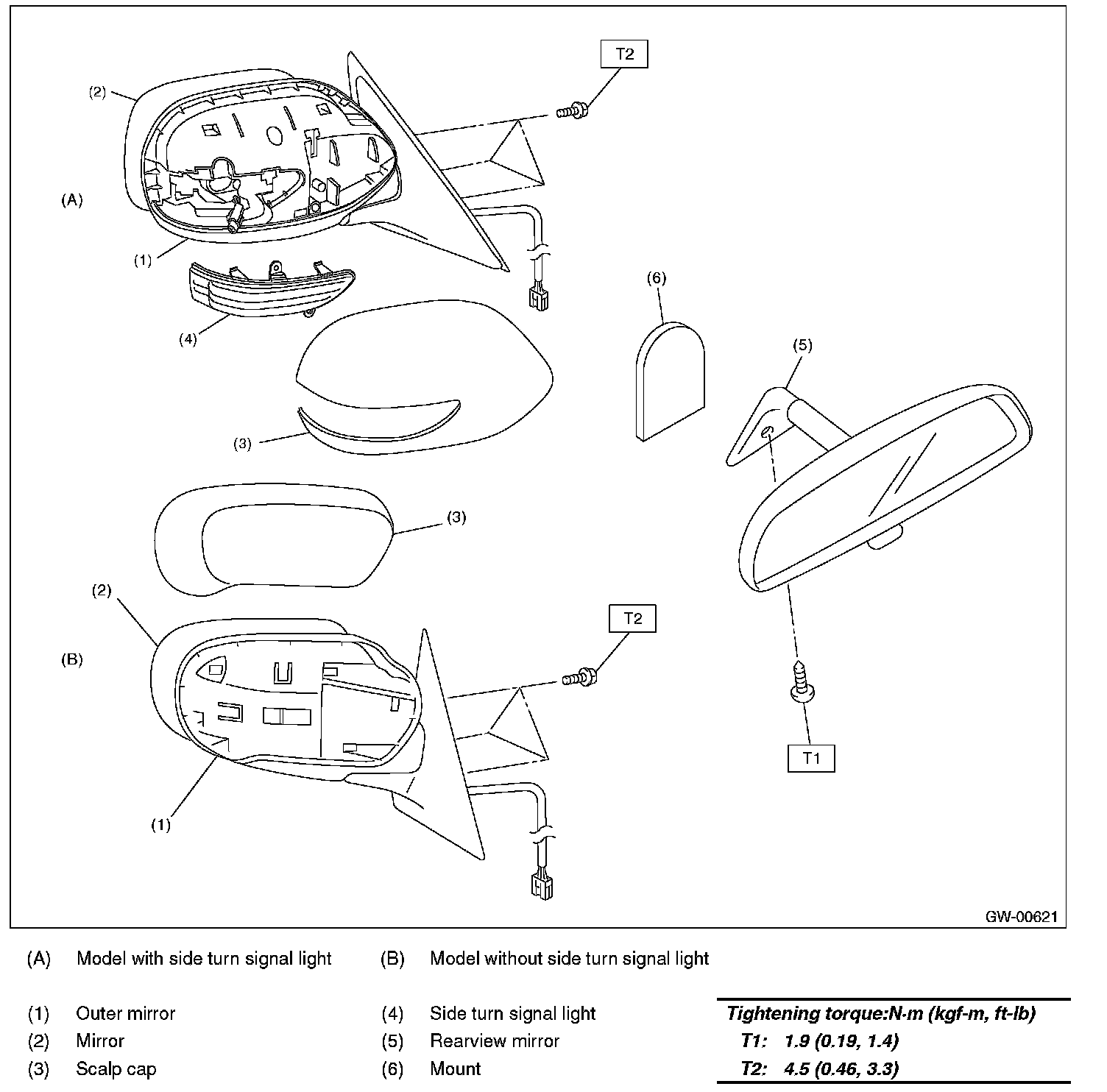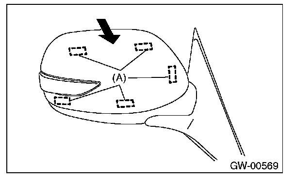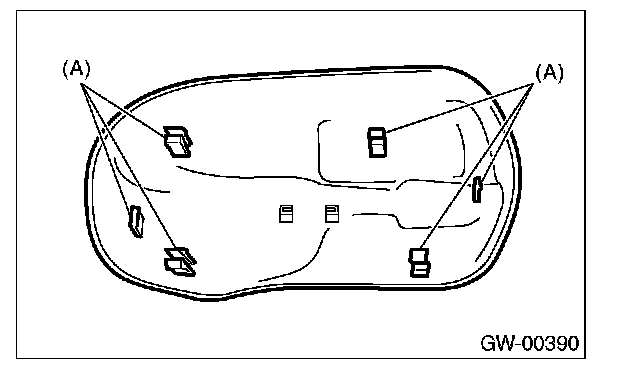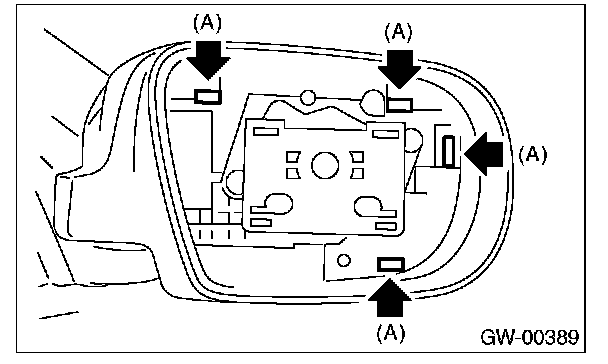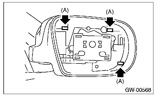 2. Press-in the clips (A) from inside of outer mirror.