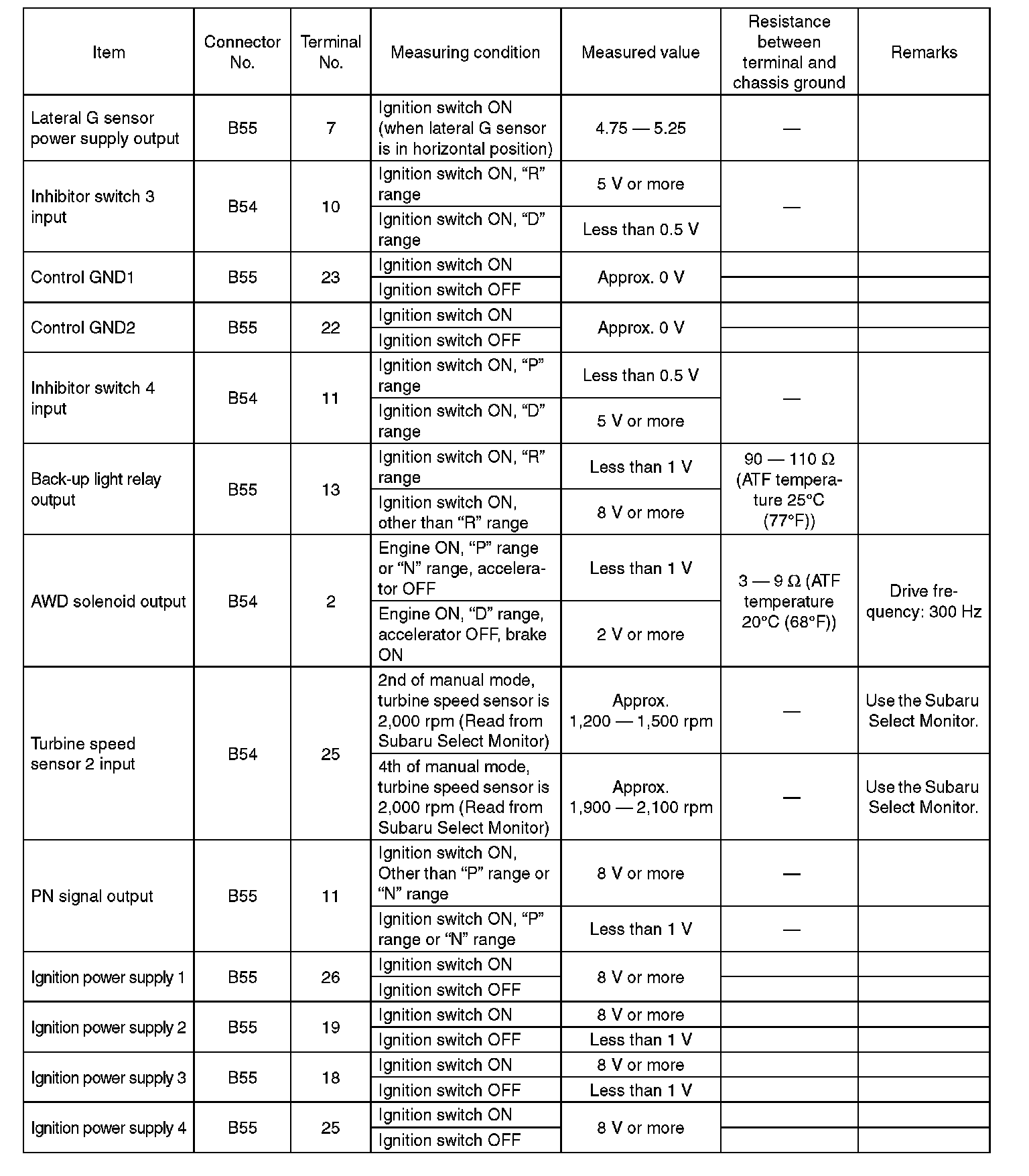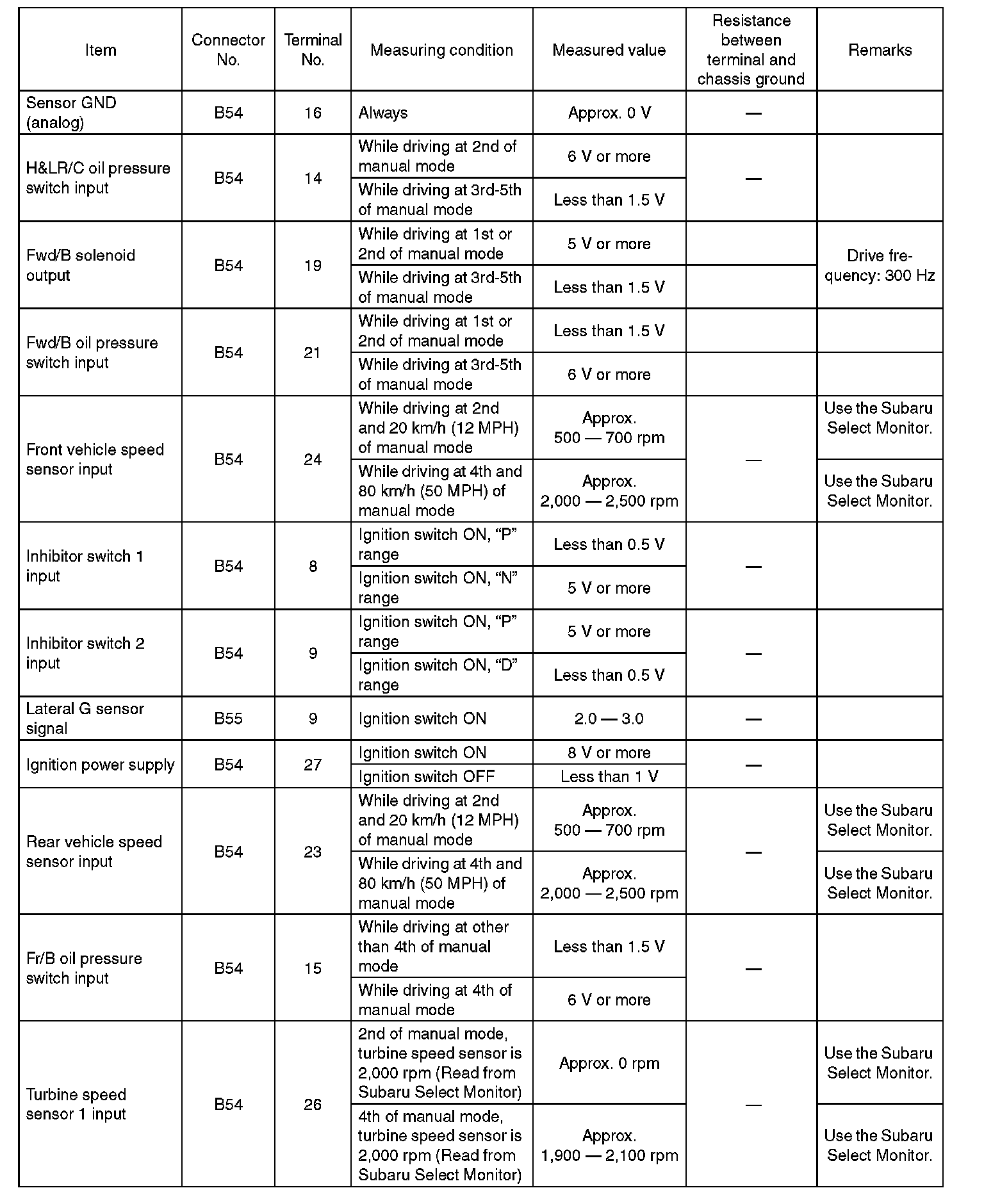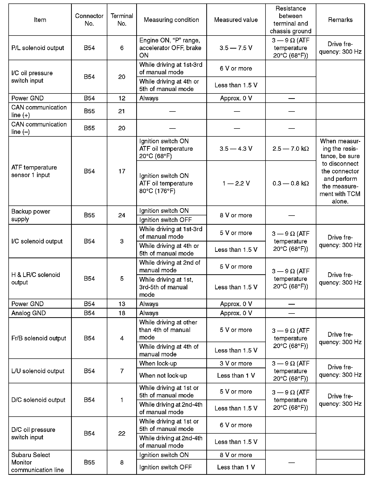 Transmission Control Module (TCM) I/O Signal