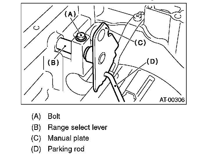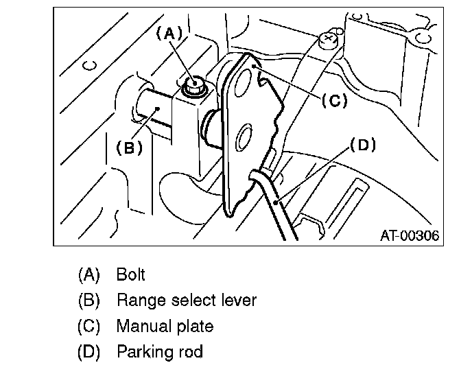 9) Remove the bolts securing select lever, and then remove the select lever, manual plate and parking rod.