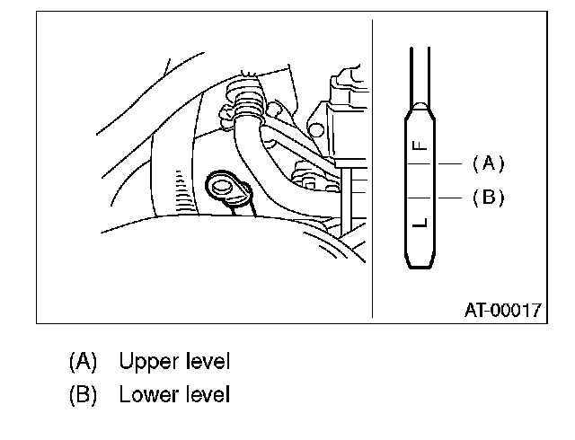 5) Remove the oil level gauge again, and check the level of differential gear oil. If the differential gear oil level is below "L" line, add oil to bring the level up to "F" line.