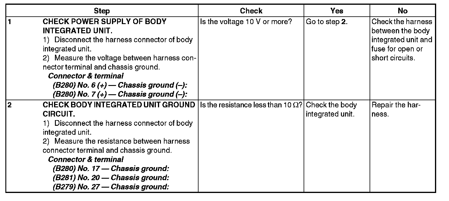 4. CHECK BODY INTEGRATED UNIT POWER SUPPLY AND GROUND CIRCUIT.
