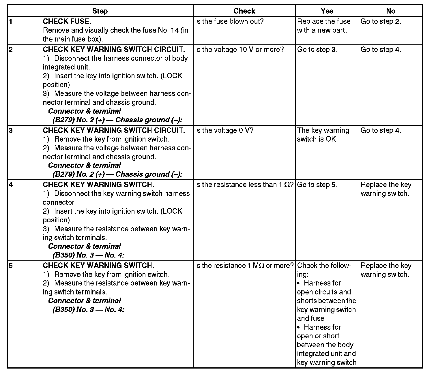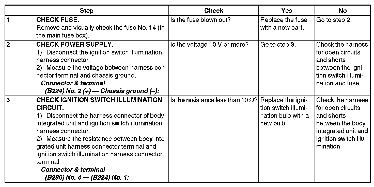 12. CHECK IGNITION SWITCH ILLUMINATION