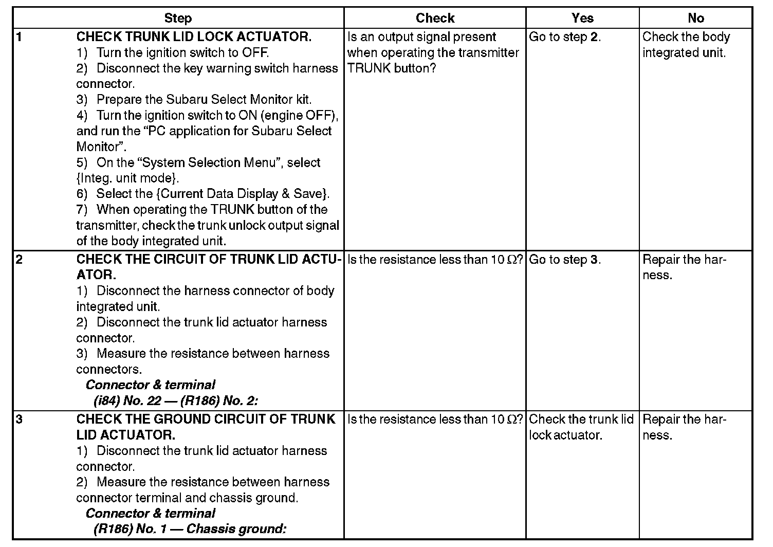 10. CHECK TRUNK LID LOCK ACTUATOR