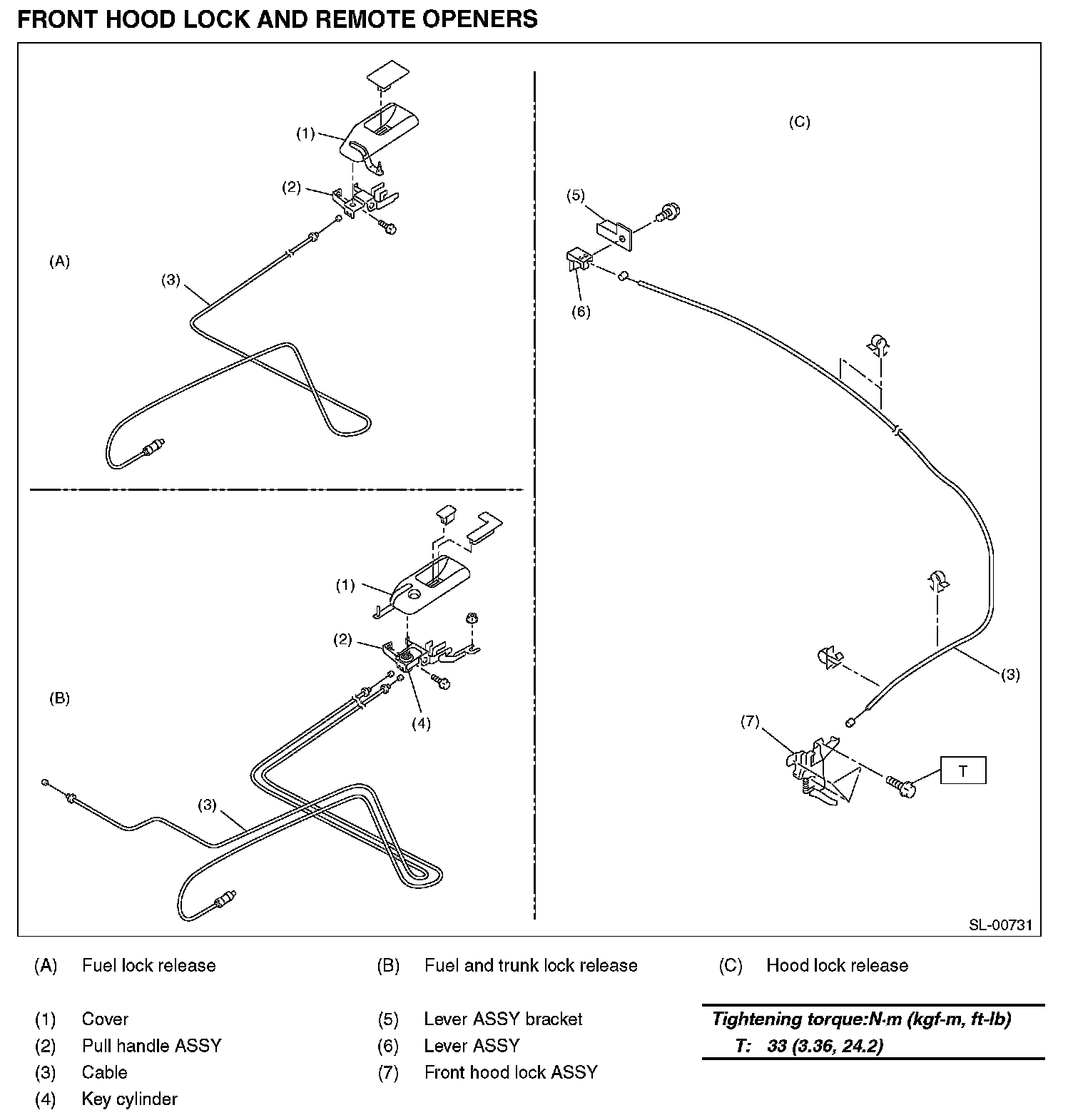 Front Hood Lock And Remote Openers: