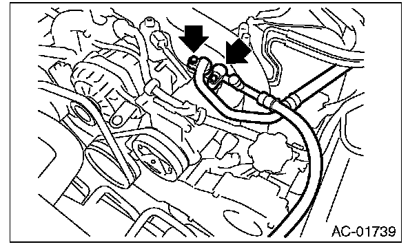 7. Remove the bolt and remove the low-pressure hose and high-pressure hose.