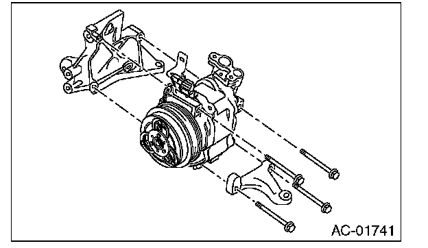 10. Remove the bolts, then remove the bracket from the compressor.