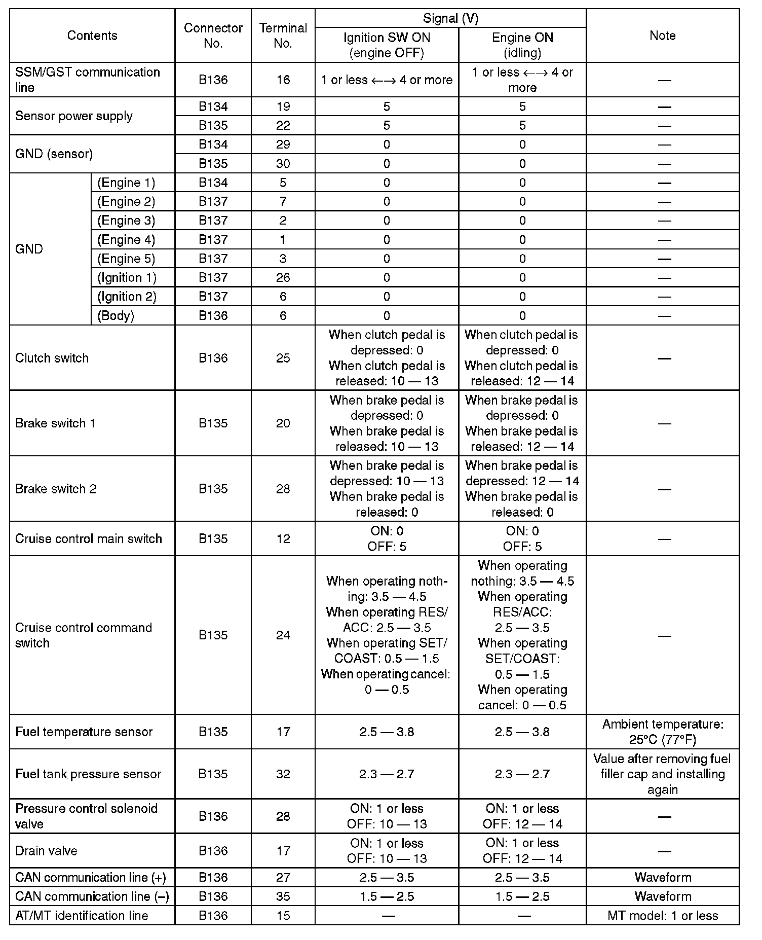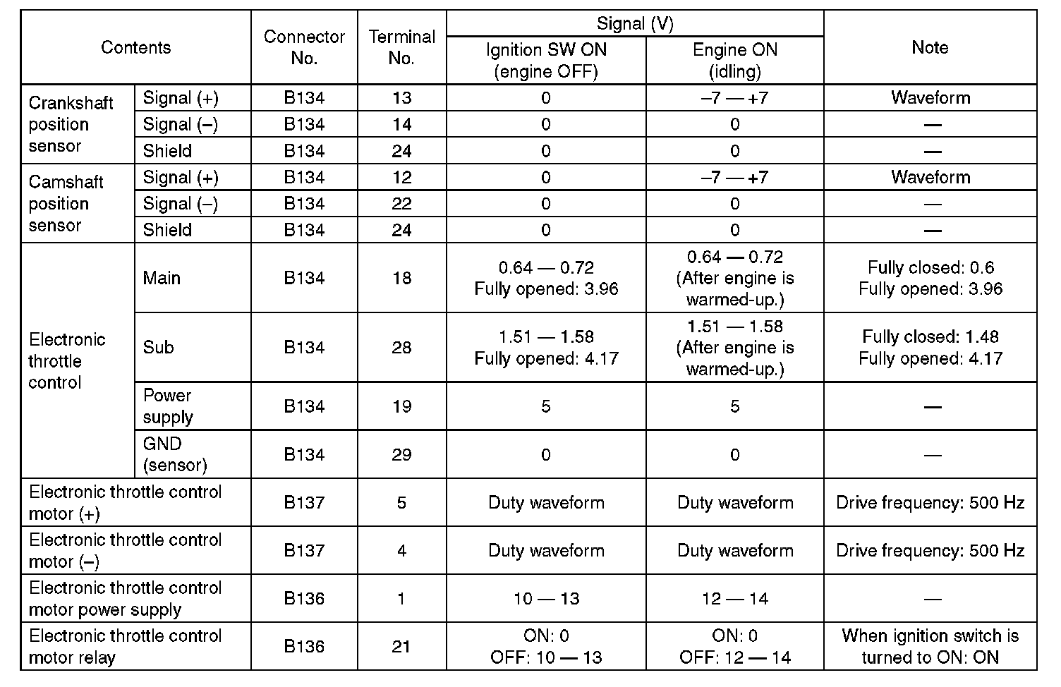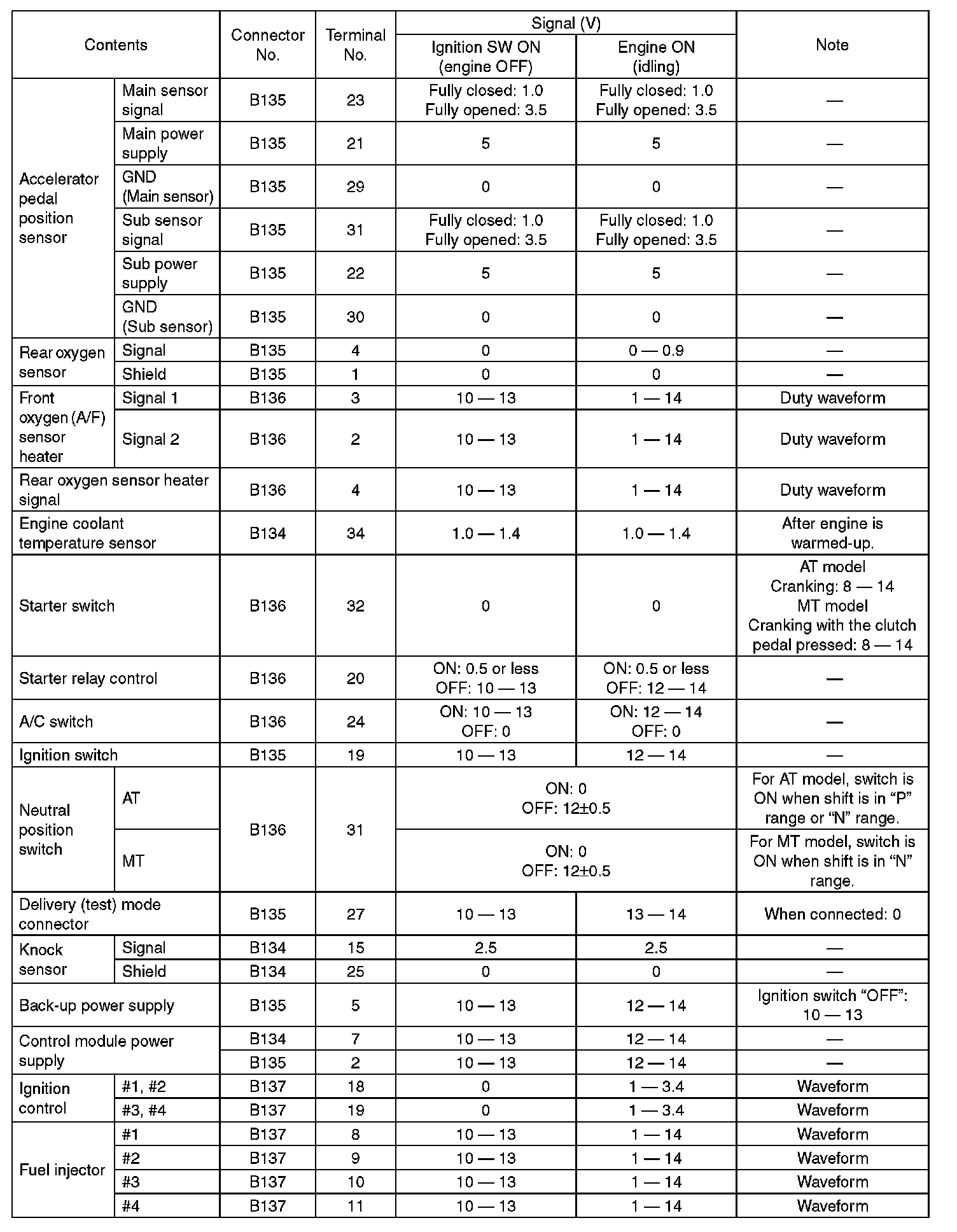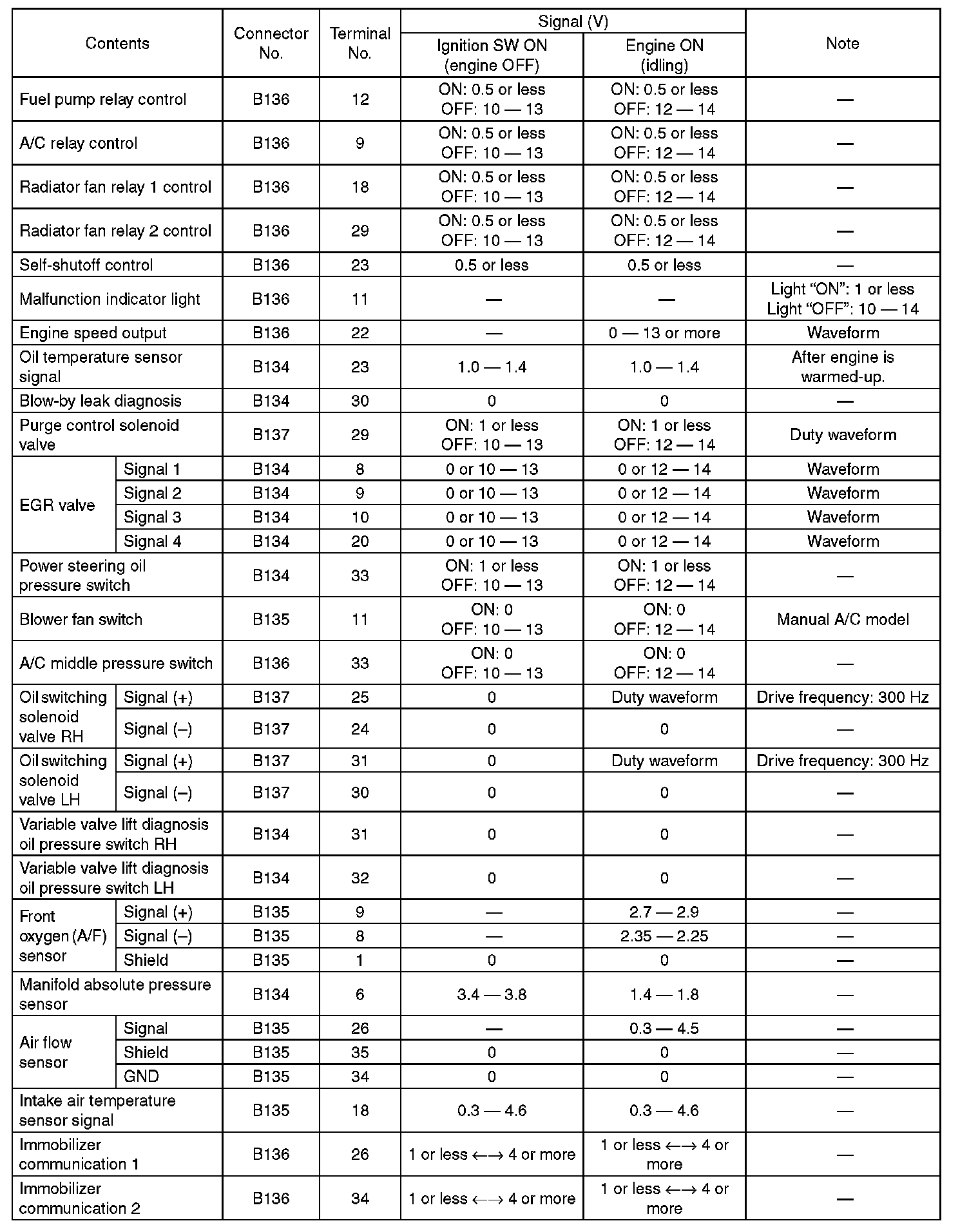 Engine Control Module (ECM) I/O Signal-Electrical Specification (Part 5):