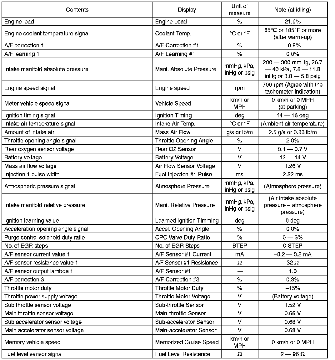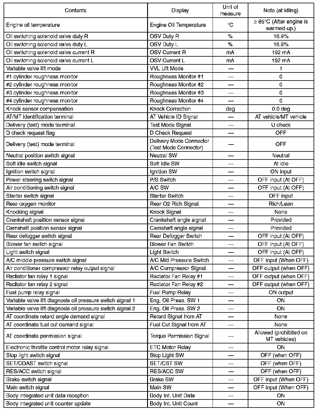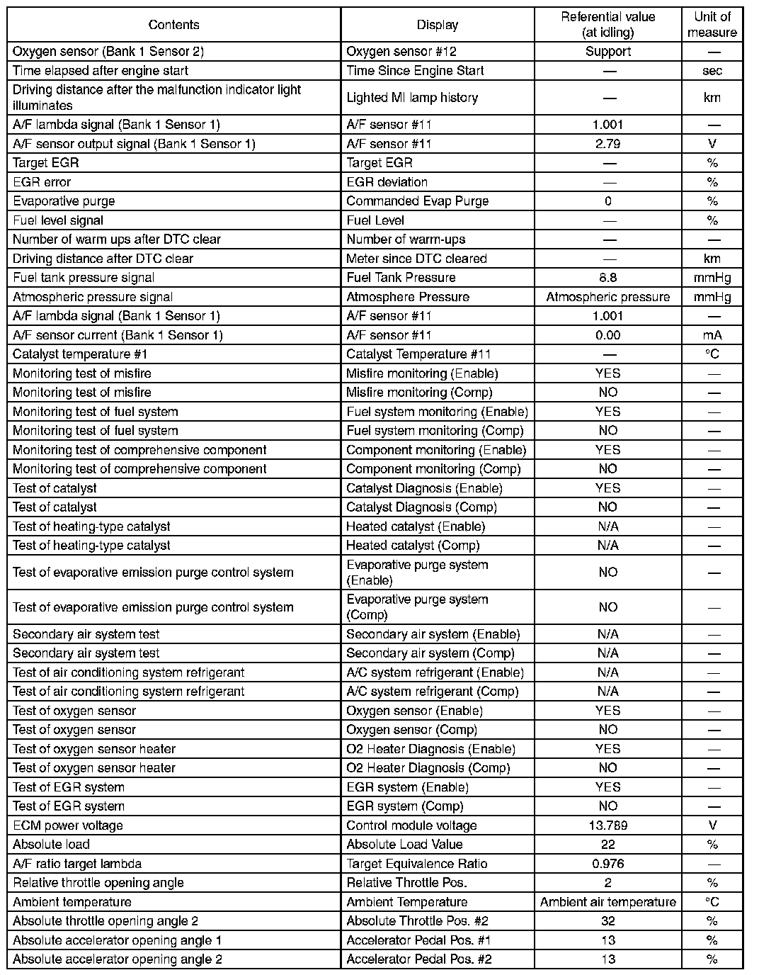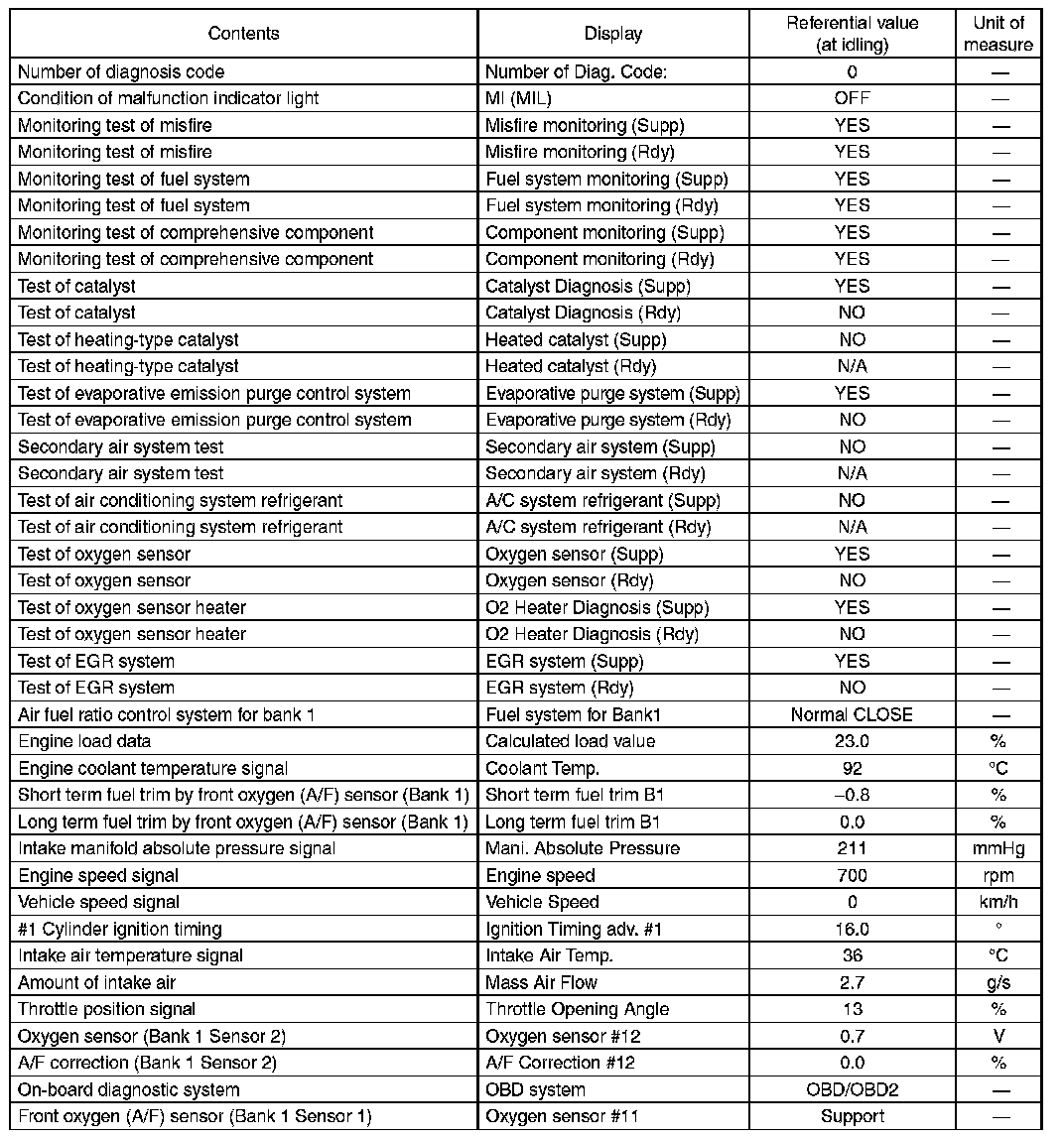 5. READ CURRENT DATA FOR ENGINE (OBD MODE)