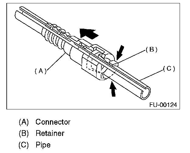 1. Disconnect the quick connector of the fuel delivery line by pushing the ST in the direction of the arrow.