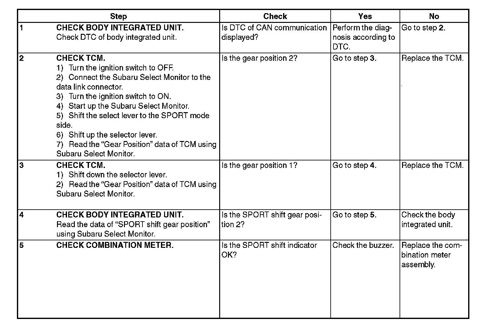CHECK SPORT SHIFT INDICATORDIAGNOSIS: