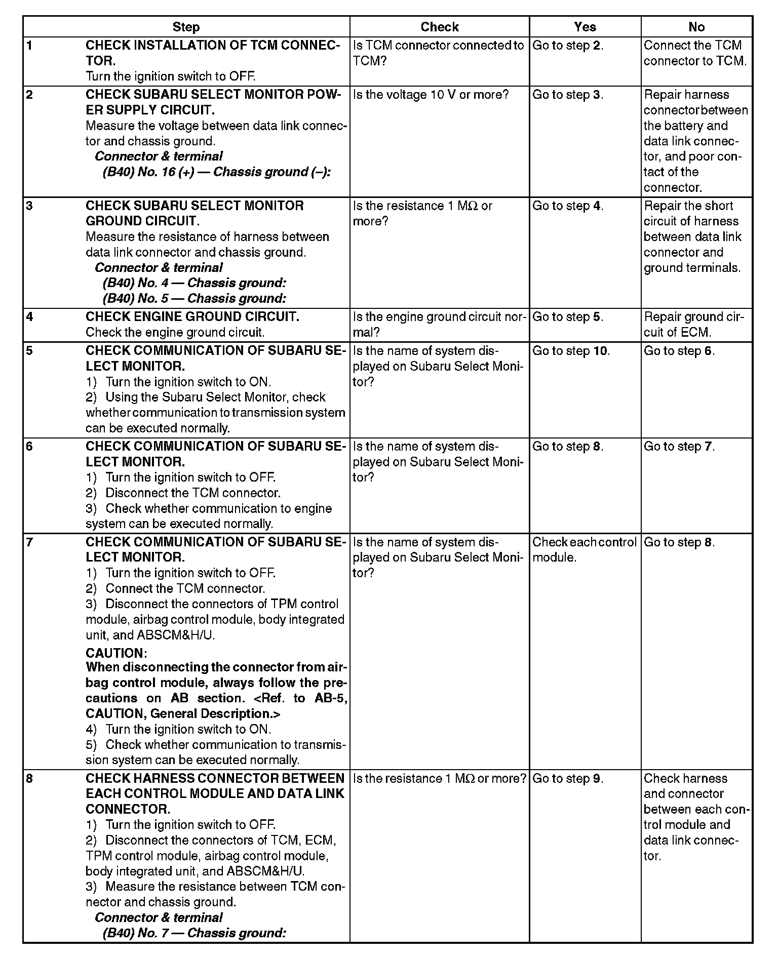 Diagnostic Procedure for Subaru Select Monitor Communication