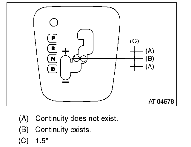 3) Check that there is continuity at equal points when the select lever is moved 1.5° in both directions from the "N" range.