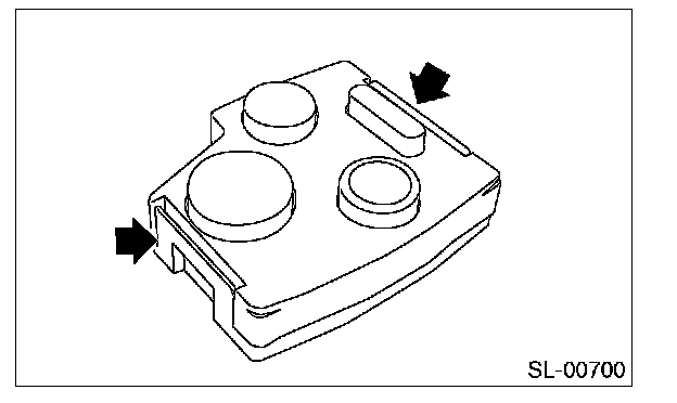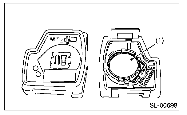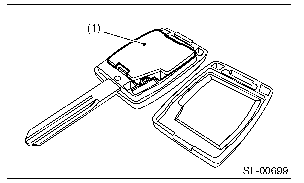 1. Disassemble the keyless transmitter, and take out the transmitter case (1).