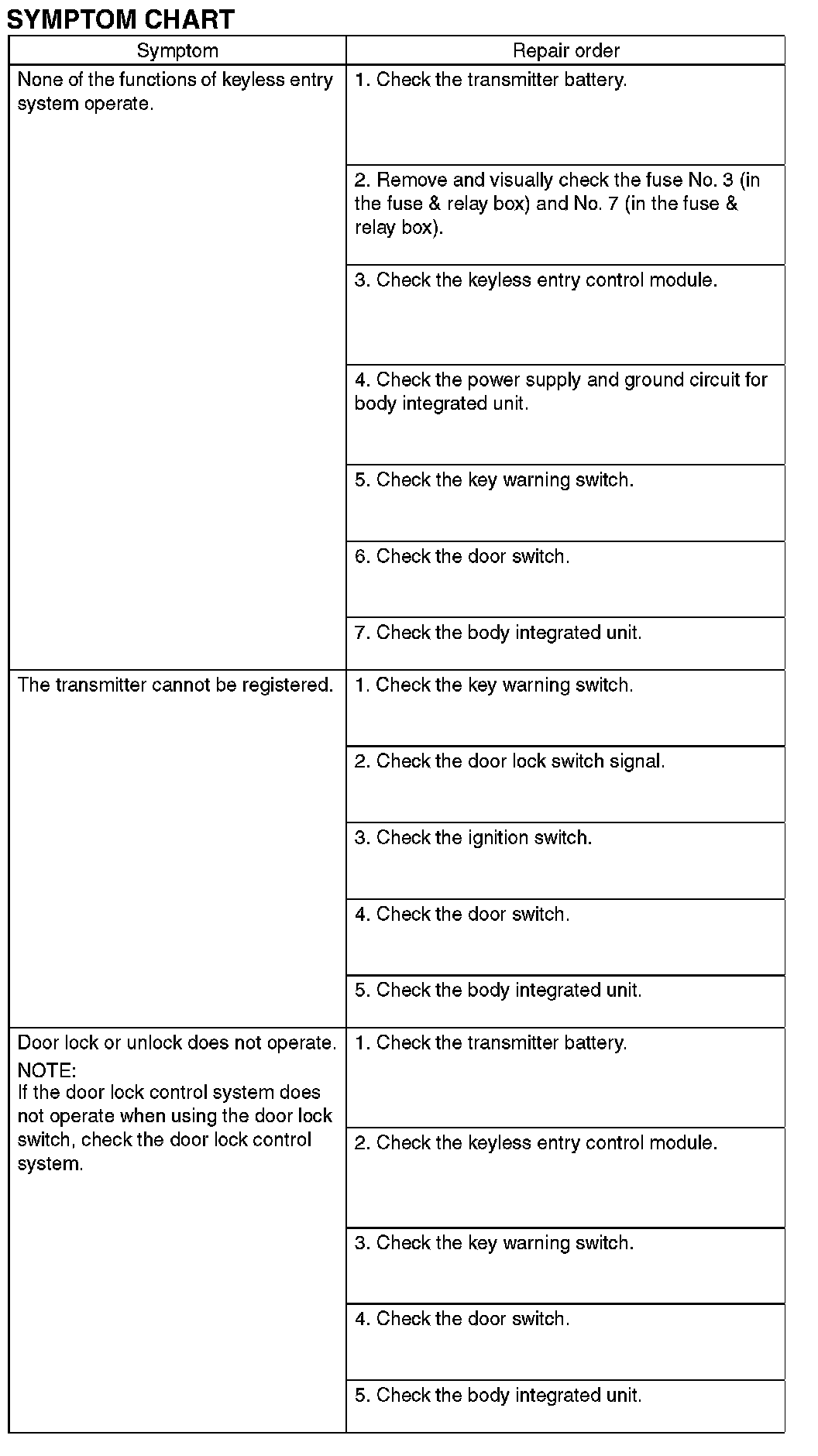 Keyless Entry SystemINSPECTION