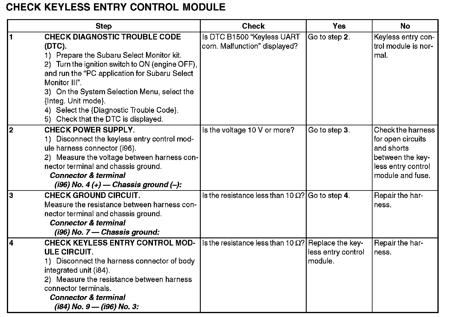3. CHECK KEYLESS ENTRY CONTROL MODULE