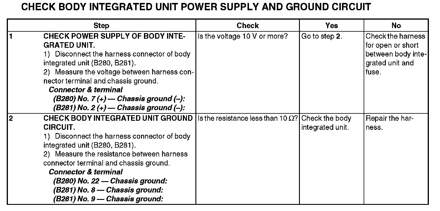 4. CHECK BODY INTEGRATED UNIT POWER SUPPLY AND GROUND CIRCUIT