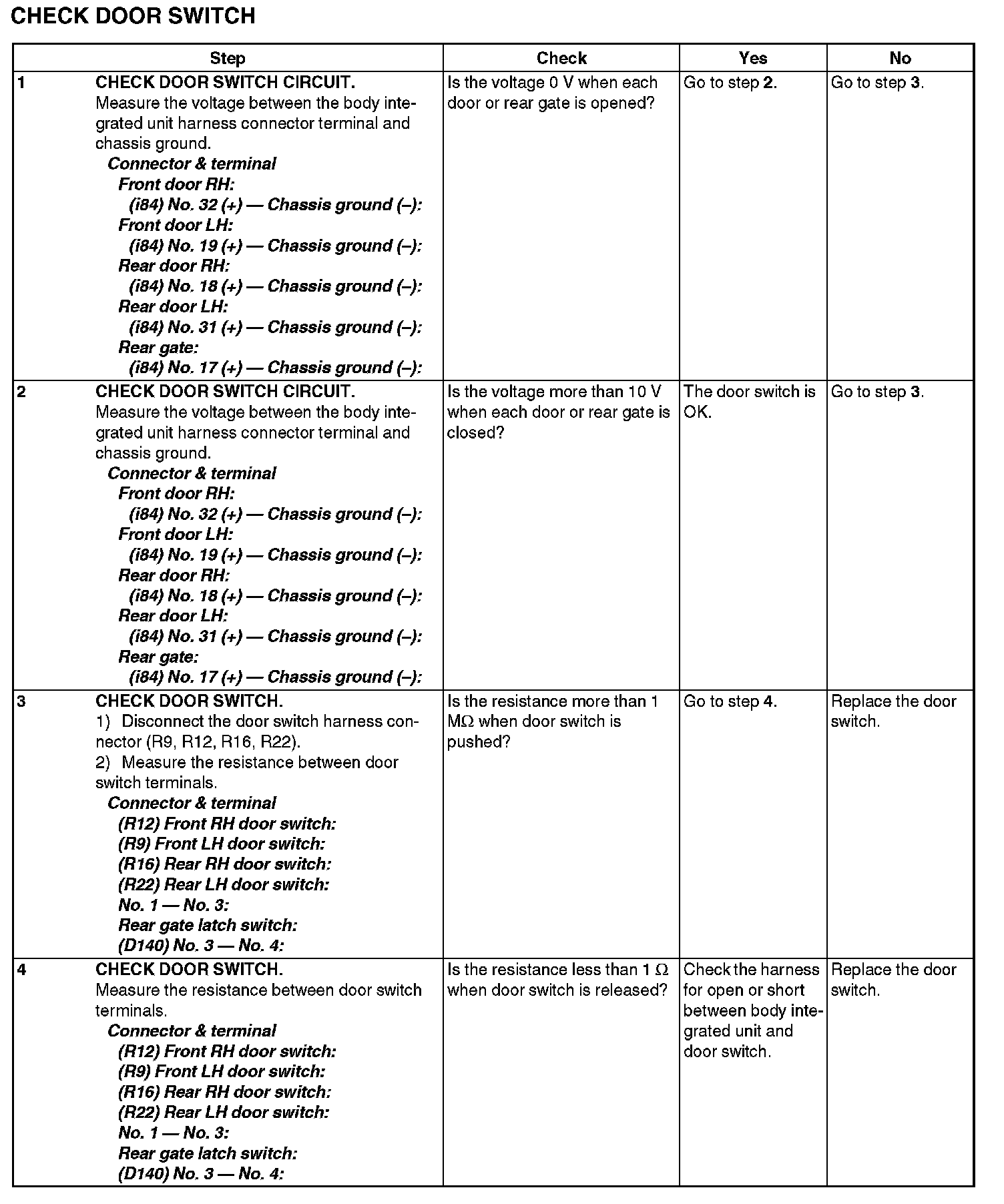 5. CHECK DOOR SWITCH