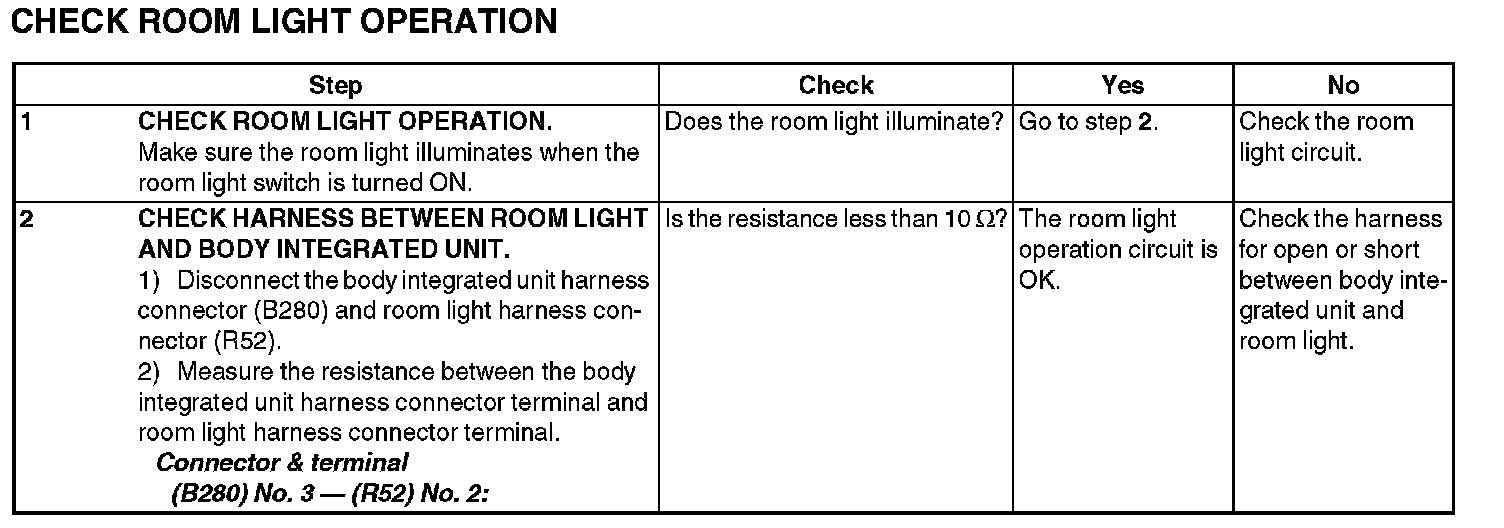 7. CHECK ROOM LIGHT OPERATION
