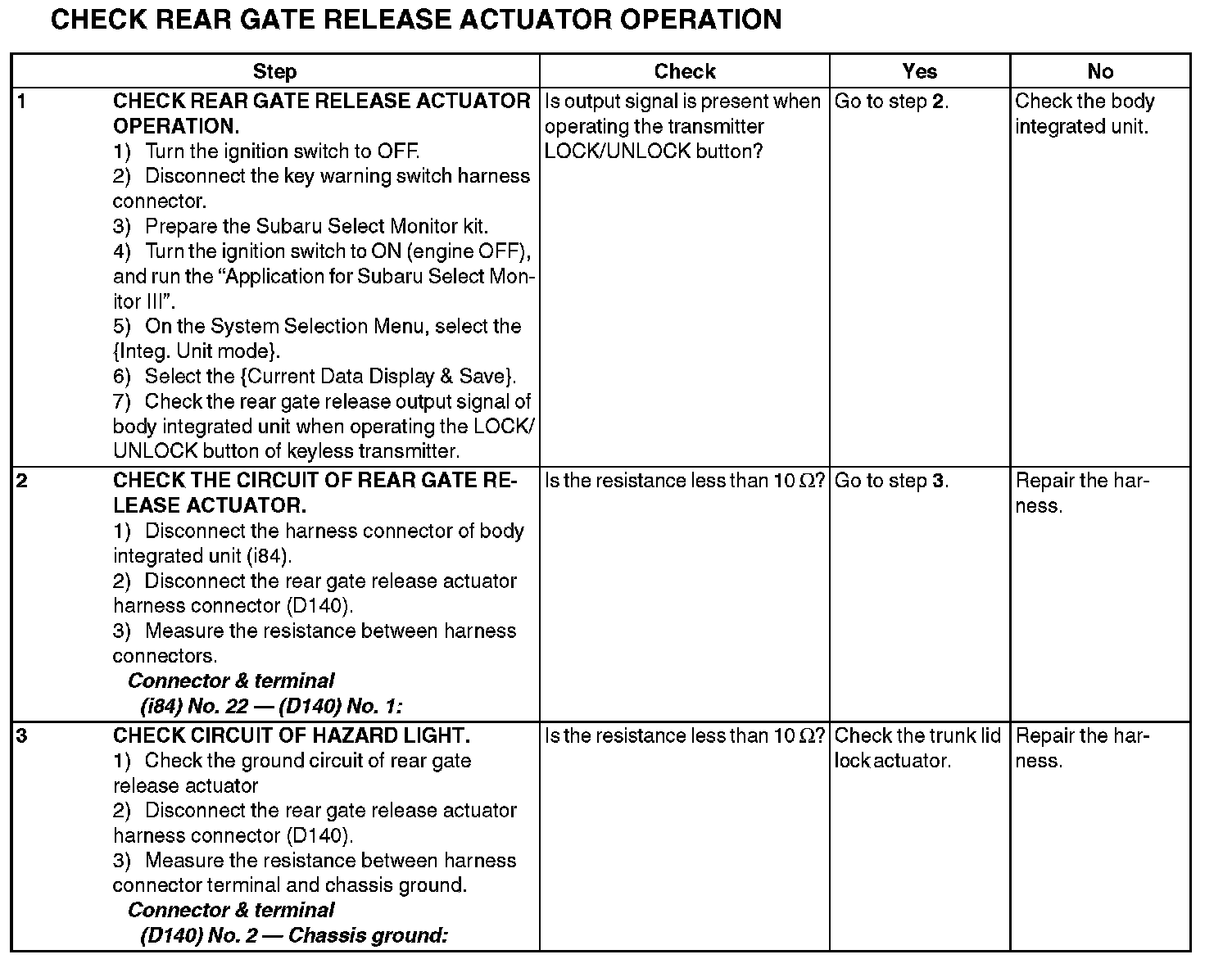 9. CHECK REAR GATE RELEASE ACTUATOR OPERATION