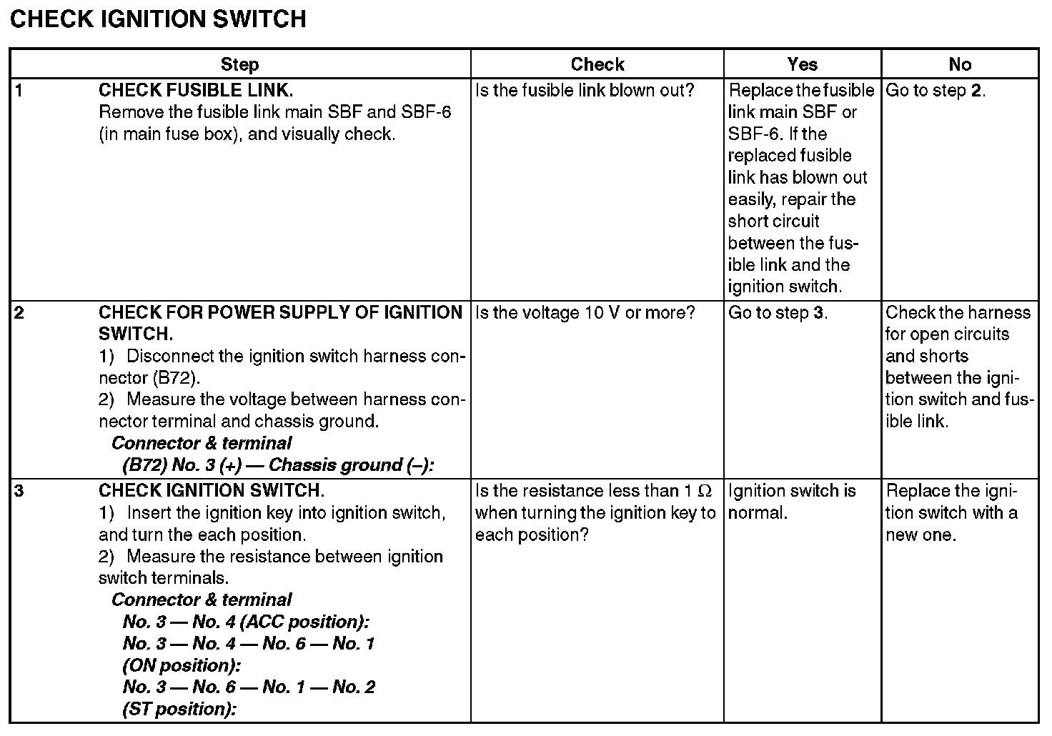 14. CHECK IGNITION SWITCH