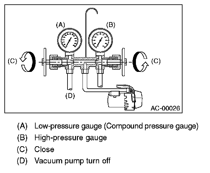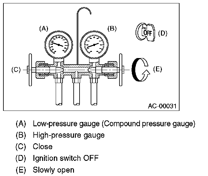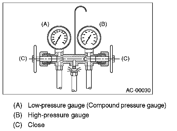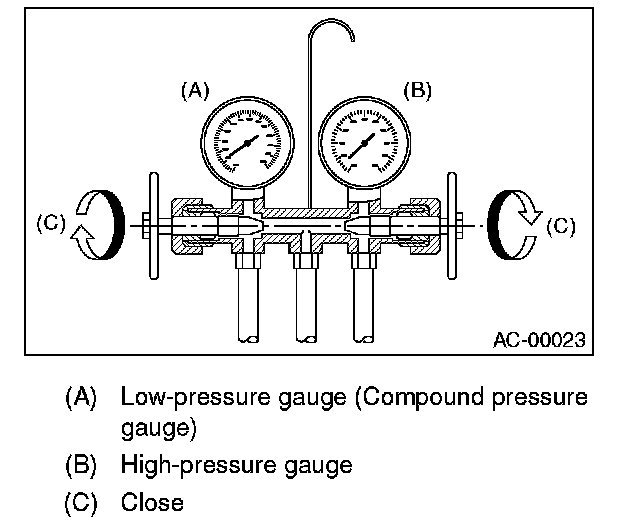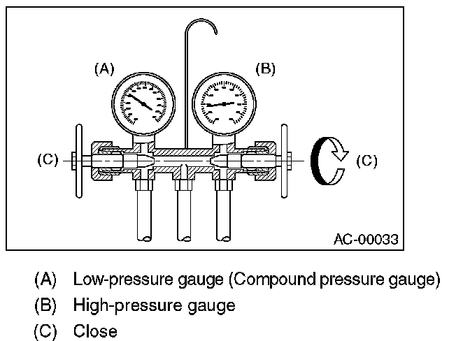 1. Close the valves on low-/high-pressure sides of the manifold gauge.
