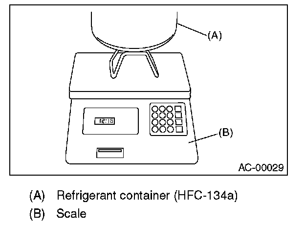 11. When a 13.6 kg (30 lb) refrigerant container is used, measure the weight of the refrigerant amount to use using a scale.